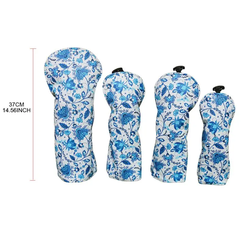 Best 4 Pcs Portable Golf Club Headcovers 135UT PU Waterproof Blue and White Porcelain Y4UB.
