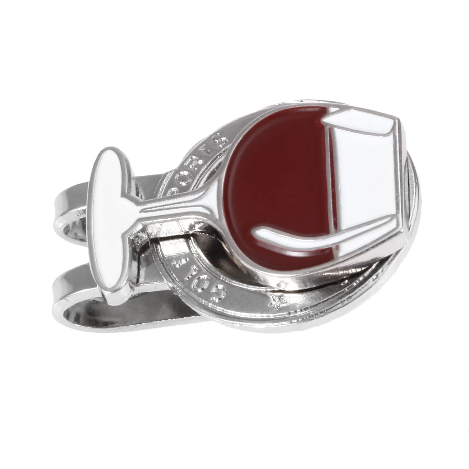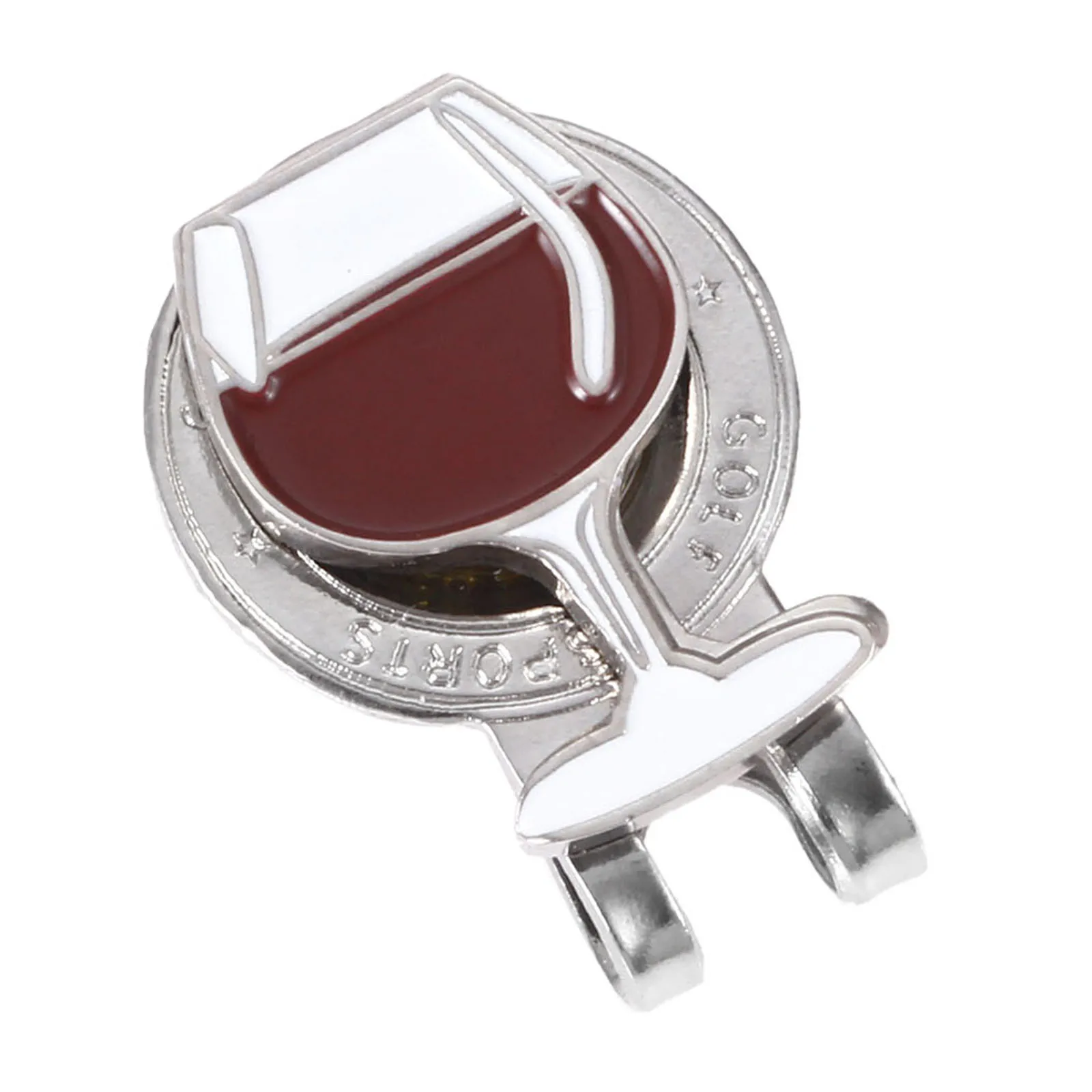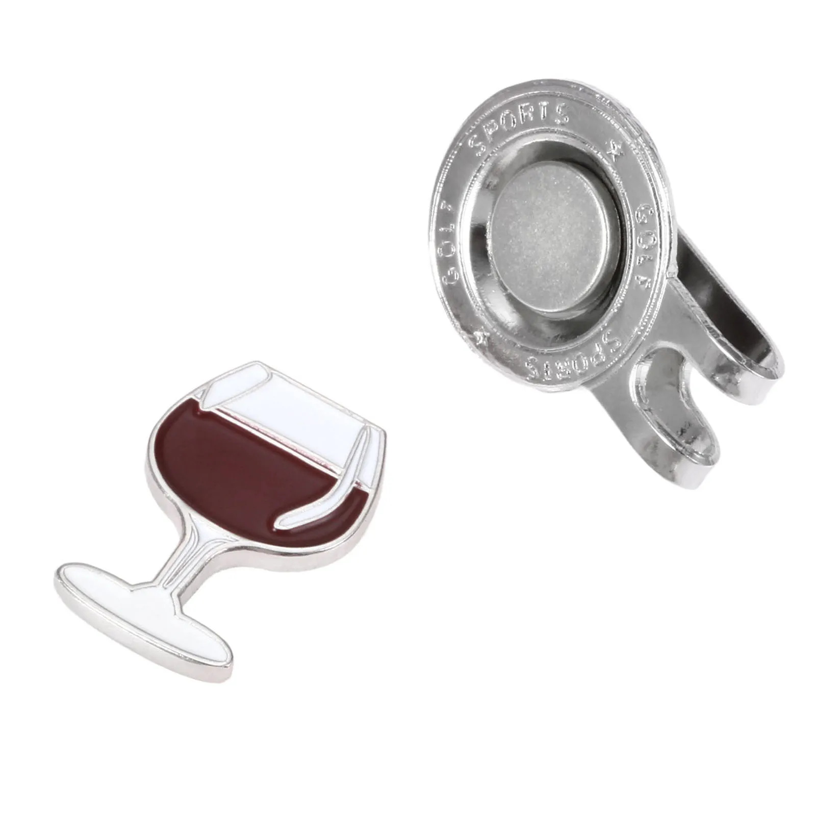 1Pc Alloy Red Wine Glass Cup Pattern Magnetic Golf Hat Clip Fastener With Golf Ball Aiming Marker Tool On Cap Visor Golfer Gifts
