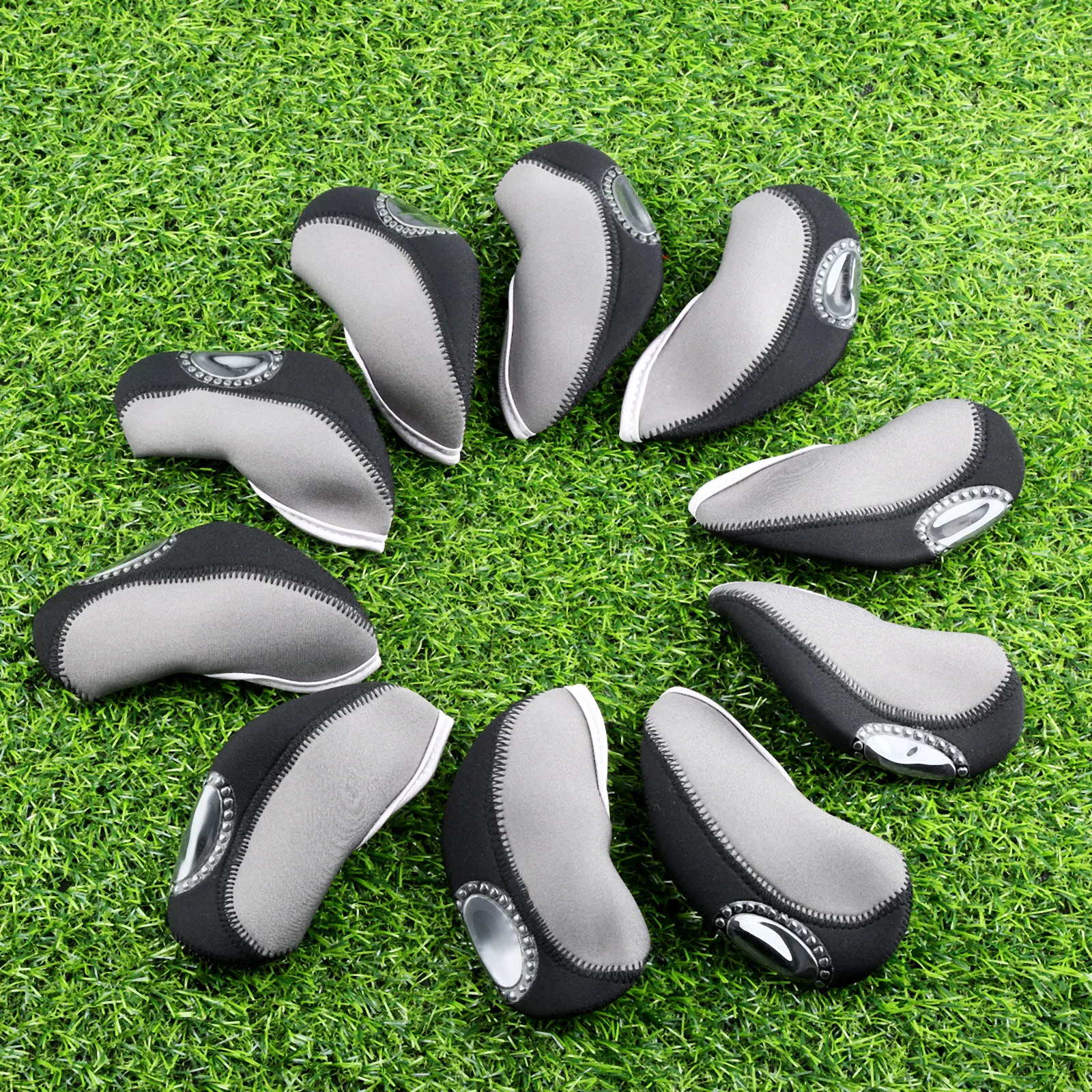 Neoprene 10ps Golf Irons Headcover Iron Putter Head Protective Covers Golf Club Head Cover Golf Club Head Accessories Gray+Black