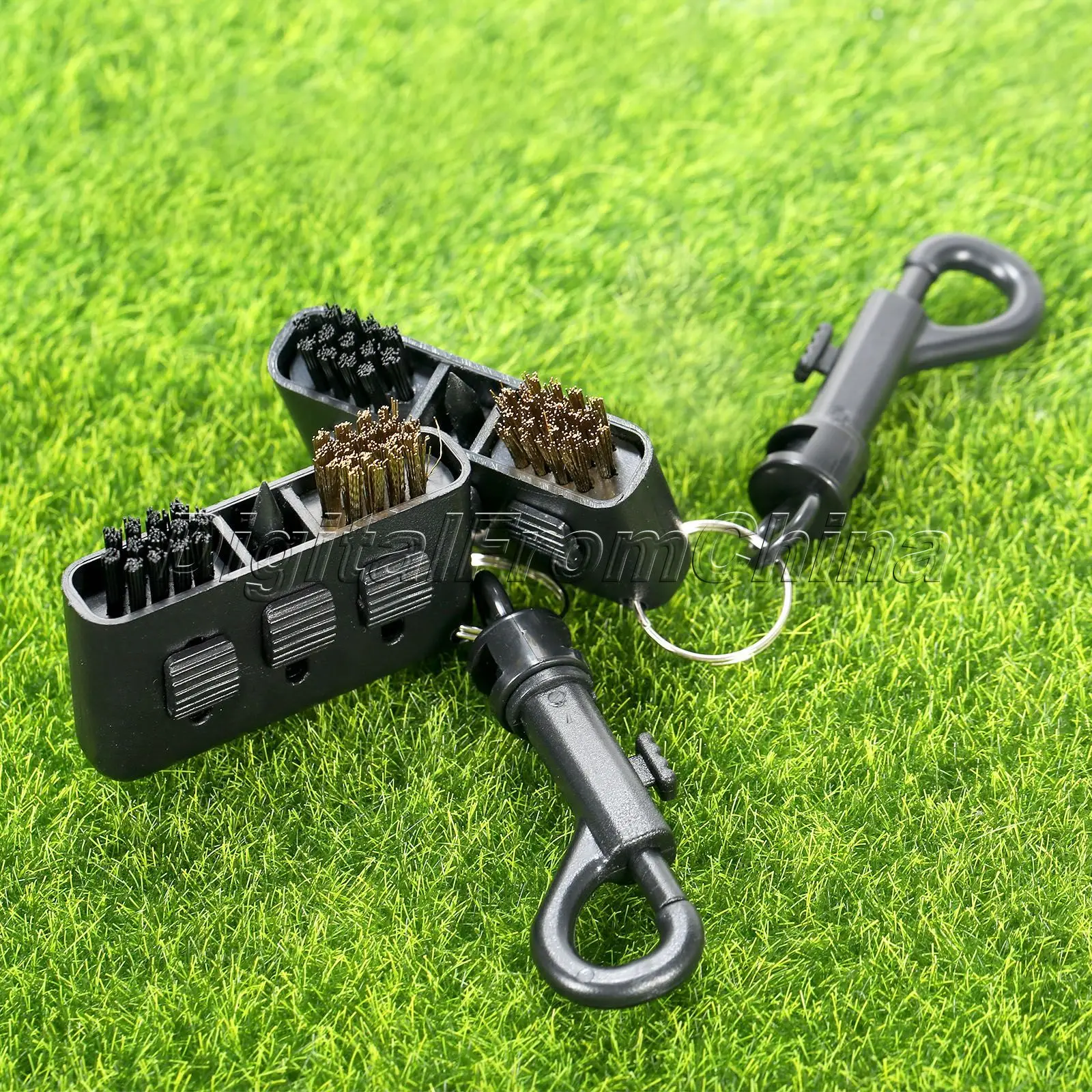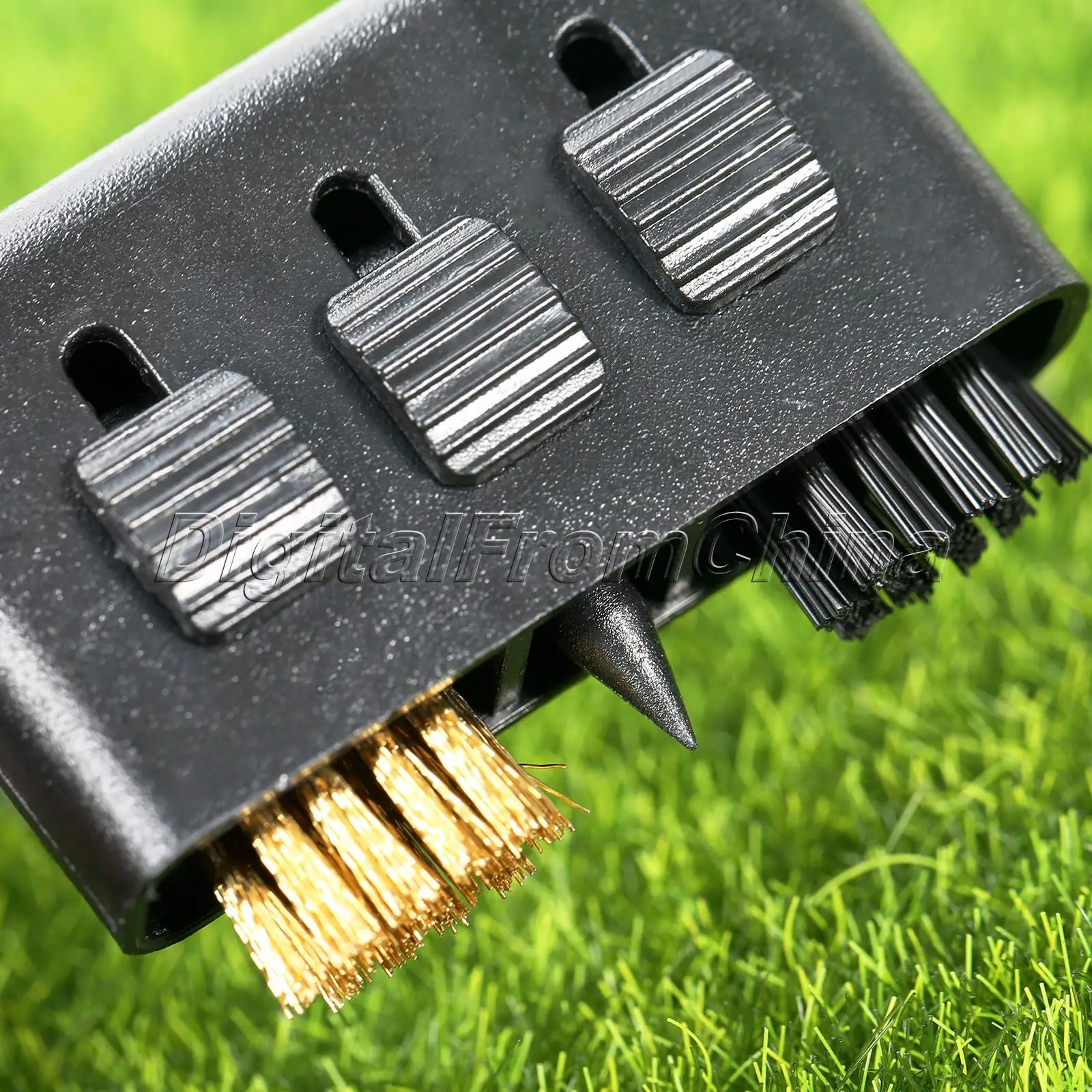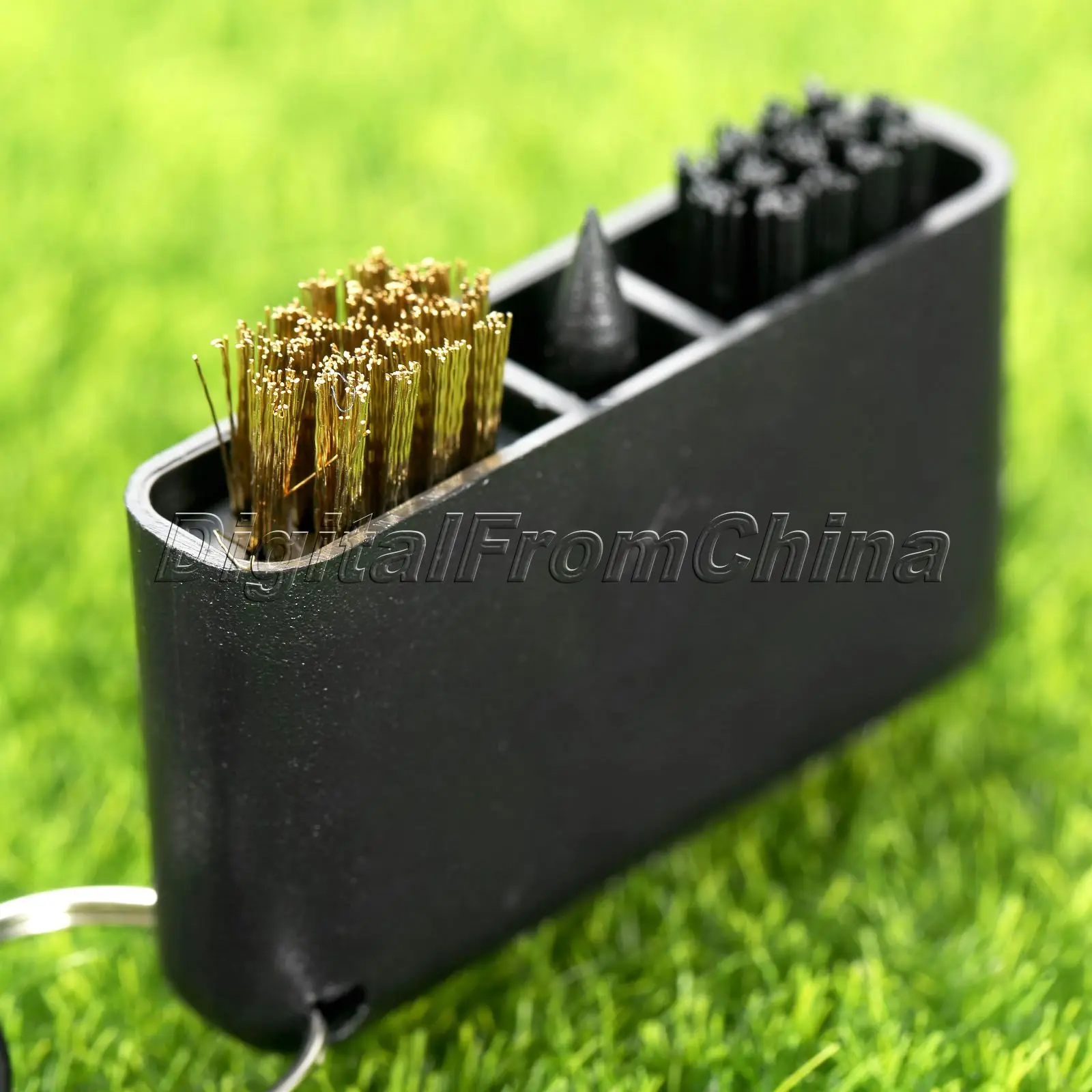 1Pc Black 3-in-1 Golf Club Cleaning Brush Groove Putter Wedge Ball Shoe Cleaner Tool Golf Training Aids Accessories Brass+Nylon