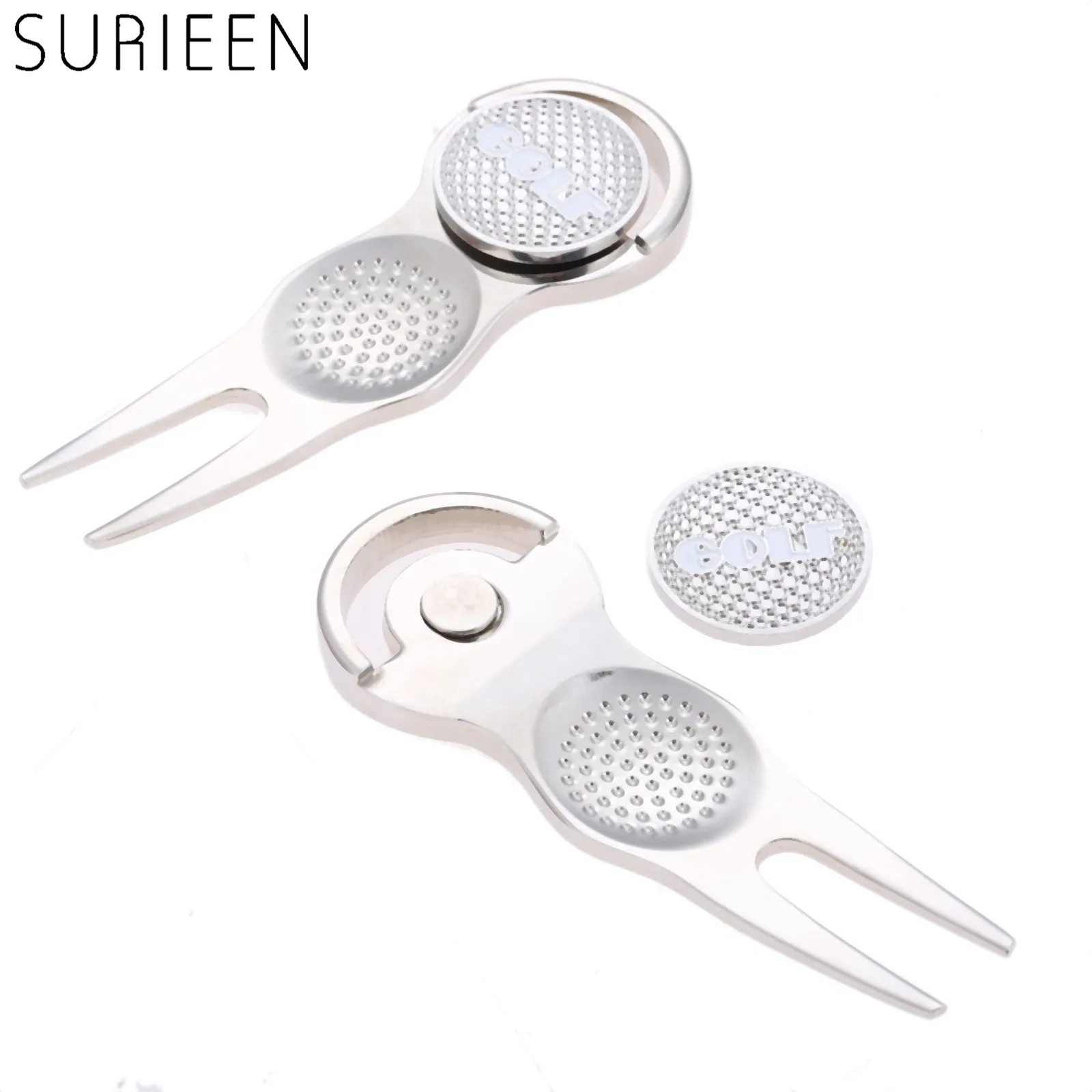 1Pc Zinc Alloy Golf Pitch Mark Repair Divot Tool With Golf Hat Clip Ball Detachable Marker 2 In 1 Pocket Putting Green Fork Tool